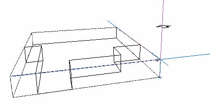 これまでは、z=0の地面からモデルをつくることを説明してきました。ここでは、自由な高さで作業するテクニックを説明します。3次元空間で自在に正確なモデリングするときに必要な2つの大切なツールは、スペースジャンプと、投影線です。スペースジャンプについては既に説明したように、たとえば、壁やマスの上に屋根をつけるような場合など、すでにつくったオブジェクトの高さに、即座にクロスヘアをもっていくことが可能です。投影線は、地面に映るオブジェクトの影のようなものです。選択したオブジェクトや、つくったばかりのオブジェクトの投影線は自動的に見えるようになっているので、すでに気づいている人もいるでしょう。それぞれのオブジェクトの投影線を見せるかどうかは、アレンジで設定できます。