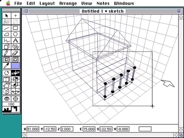 2. よく見ると、いちばん北側の柱はポーチからはみ出しています。この柱だけをクリックして選択して、下矢印キーを打って南側に0.5フィート動かしてポーチにのせてください。