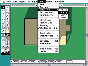 3. 次は、ビューの立面図から南を選んで、南から東西断面を見てみましょう。
